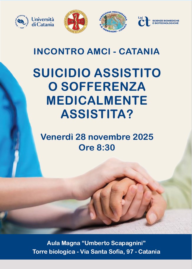 Il convegno, promosso dall’ Associazione Medici Cattolici Italiani – Sezione di Catania, intende promuovere una riflessione scientifica ed etica sul tema delle scelte di fine vita, ponendo al centro la dignità della persona, la qualità dell’esistenza e i limiti dell’intervento medico.